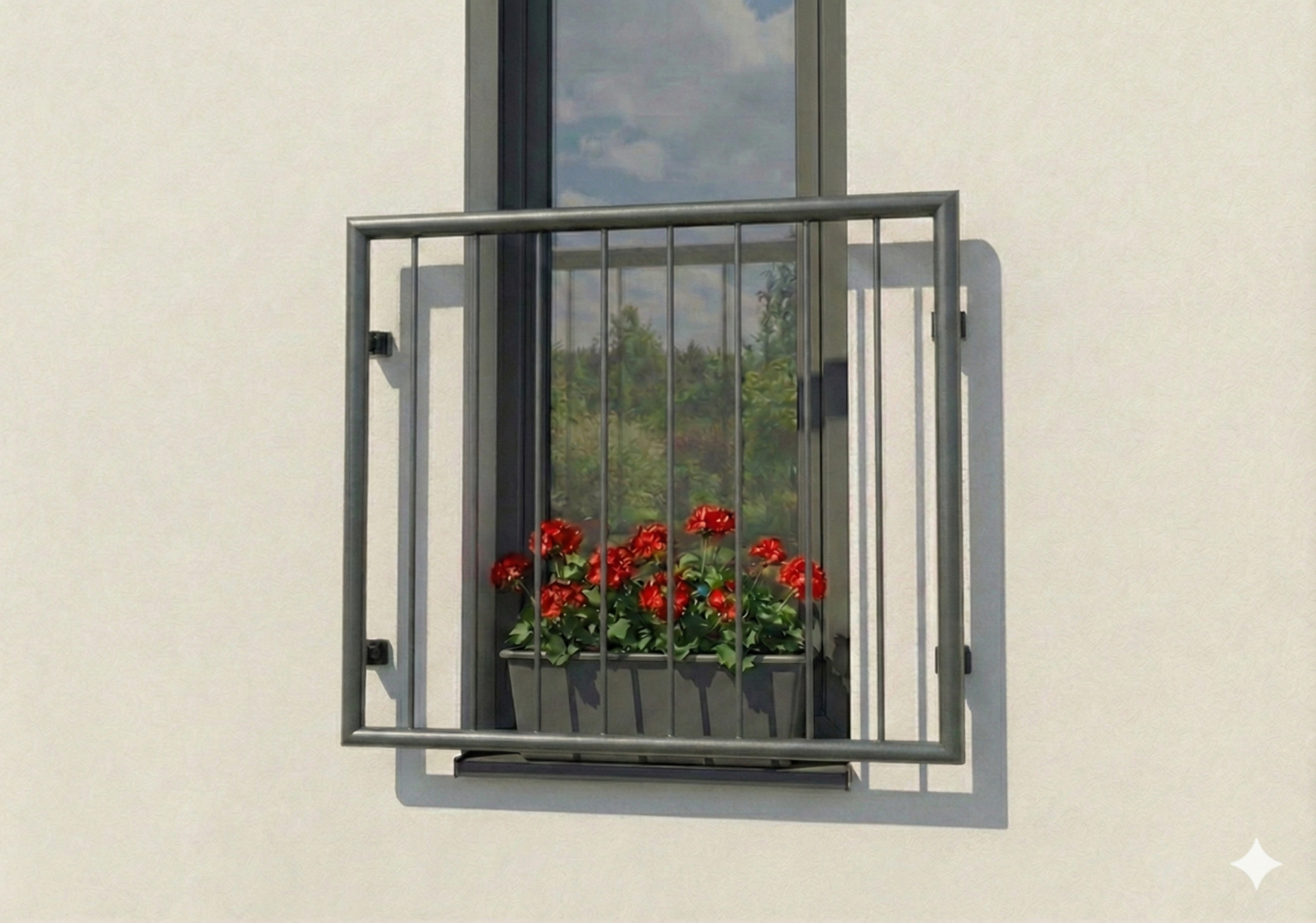 Bezpečné a designové řešení pro vaše francouzská okna. Toto zábradlí je vyrobeno z kvalitní nerezové oceli a následně svařeno do jednoho pevného kusu (žádné šroubované spoje, které by se časem uvolnily). Povrch je ošetřen odolnou práškovou barvou (komaxit), která zaručuje bezúdržbovost a moderní vzhled.